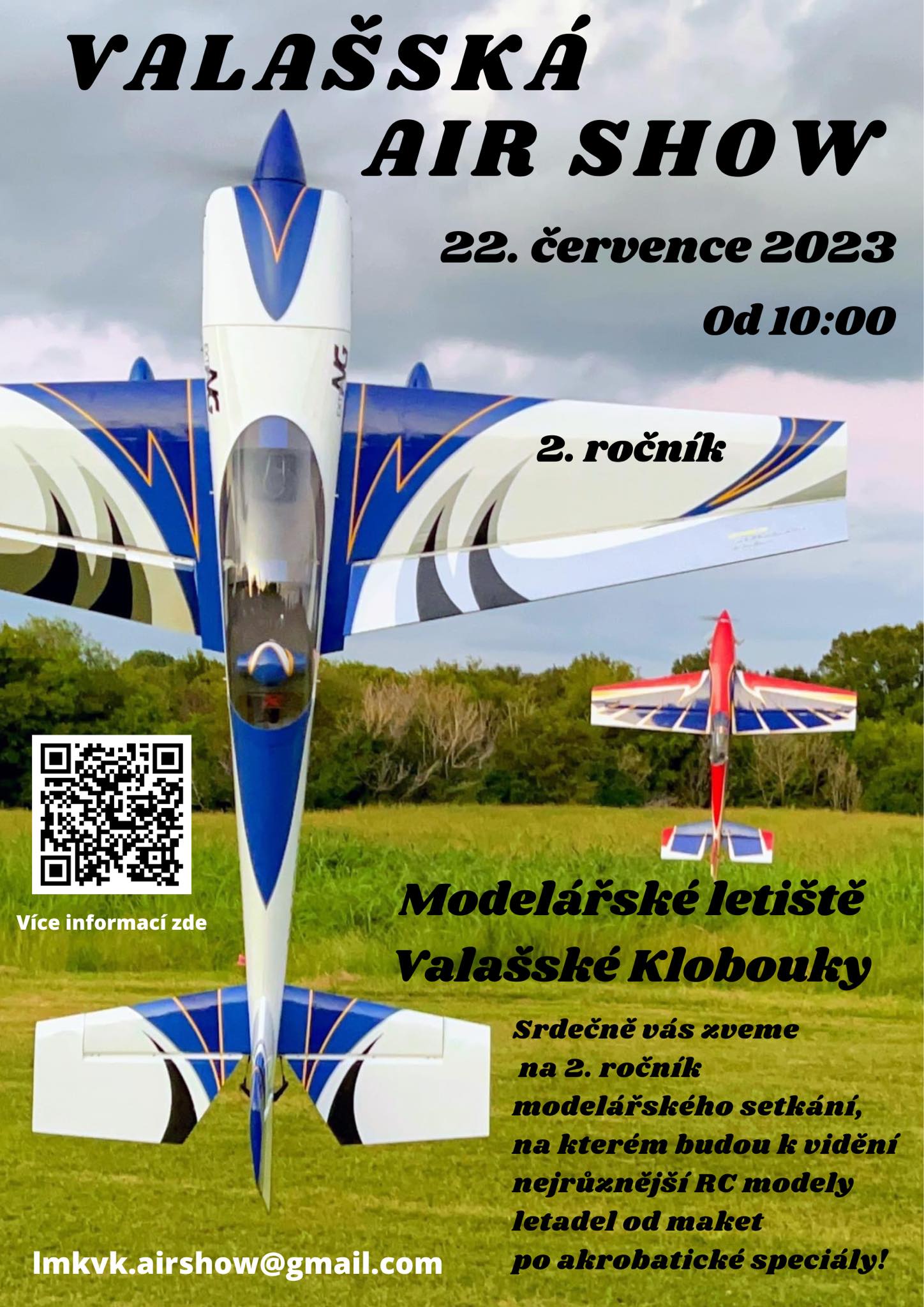 22. 7. 2023 proběhl na modelářském letišti 2. ročník Valašské AirShow. Pro diváky byly připraveny ukázky RC modelů i opravdových letadel. Na závěr přiletěl ikonický Zlín Z-37 Čmelák. Návštěvníci měli možnost se s luhačovickým Čmelákem i vyfotit. Moc děkujeme všem účastníkům, zejména pak luhačovickým pilotům za jejich skvělé a nenahraditelné ozvláštnění naší akce. Již teď se velmi těšíme na následující ročník!